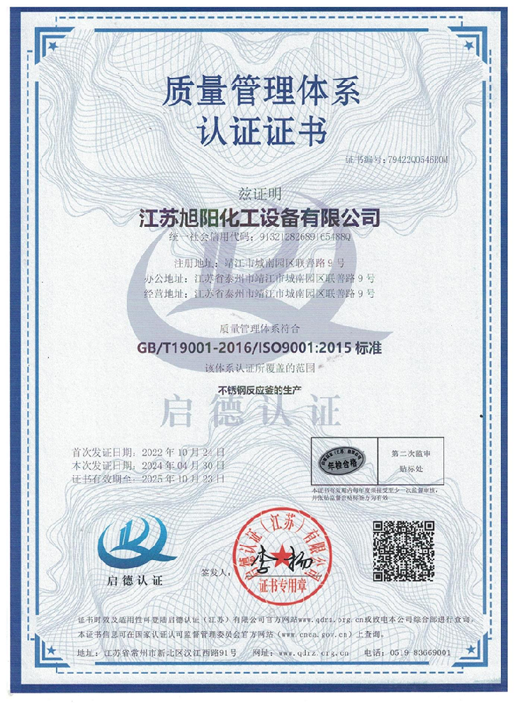 江蘇旭陽化工設(shè)備有限公司專業(yè)從事各類化工、環(huán)保、制藥、發(fā)酵、食品、新材料、鋰業(yè)等項(xiàng)目設(shè)計、制造及壓力容器的生產(chǎn)制造,是一家集研發(fā)、生產(chǎn)和進(jìn)出口貿(mào)易于一體的高科技企業(yè)。